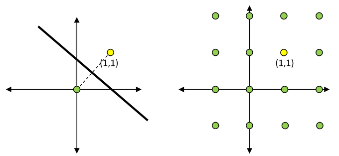 f). Starting with a point at (1, 1) on a Cartesian plane, how many mirrors do we need to result in a point at each lattice point if mirrors are any points and can reflect in any direction?